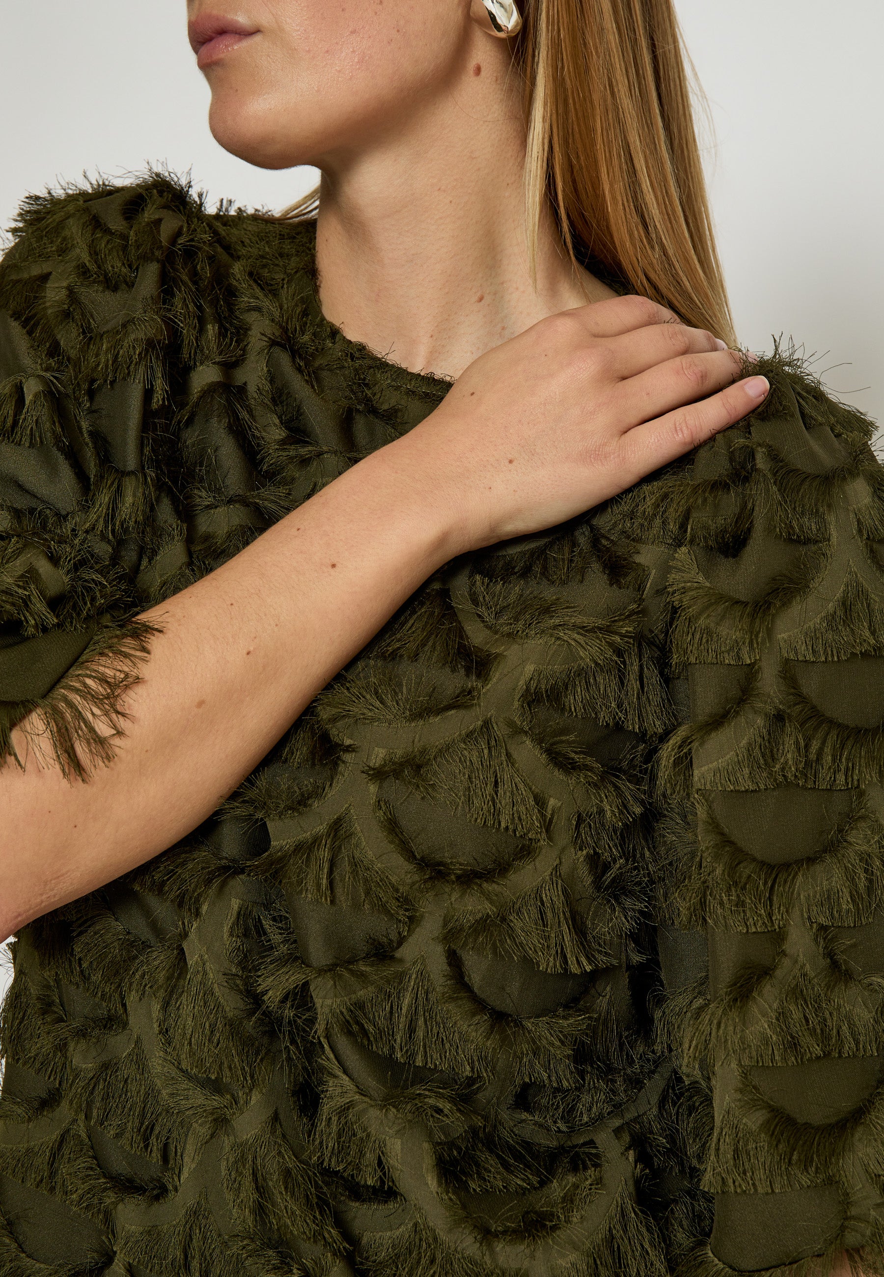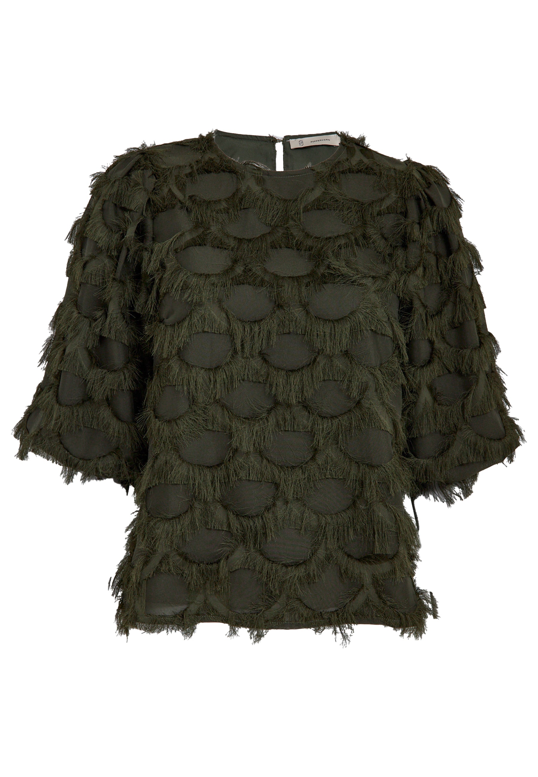 Kaki, olijf fluche bloes met 3/4 ballon mouw