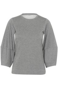 Licht grijs melange sweater in modal met 3/4 mouwen
