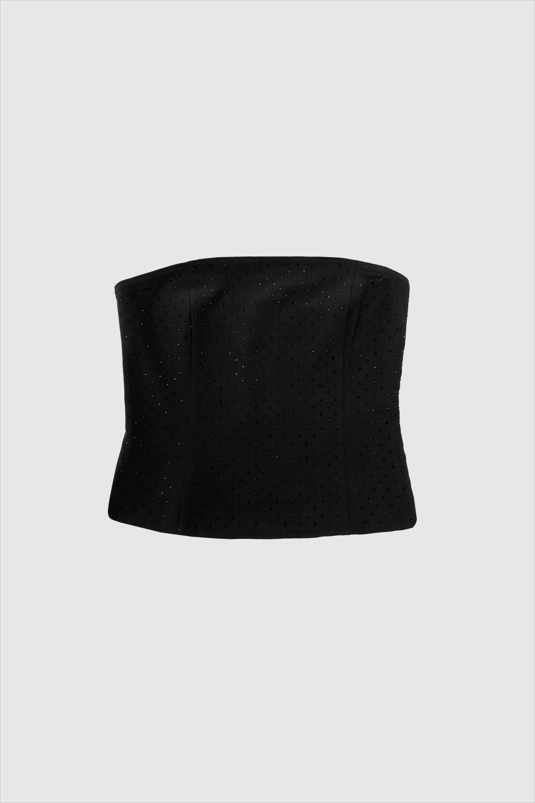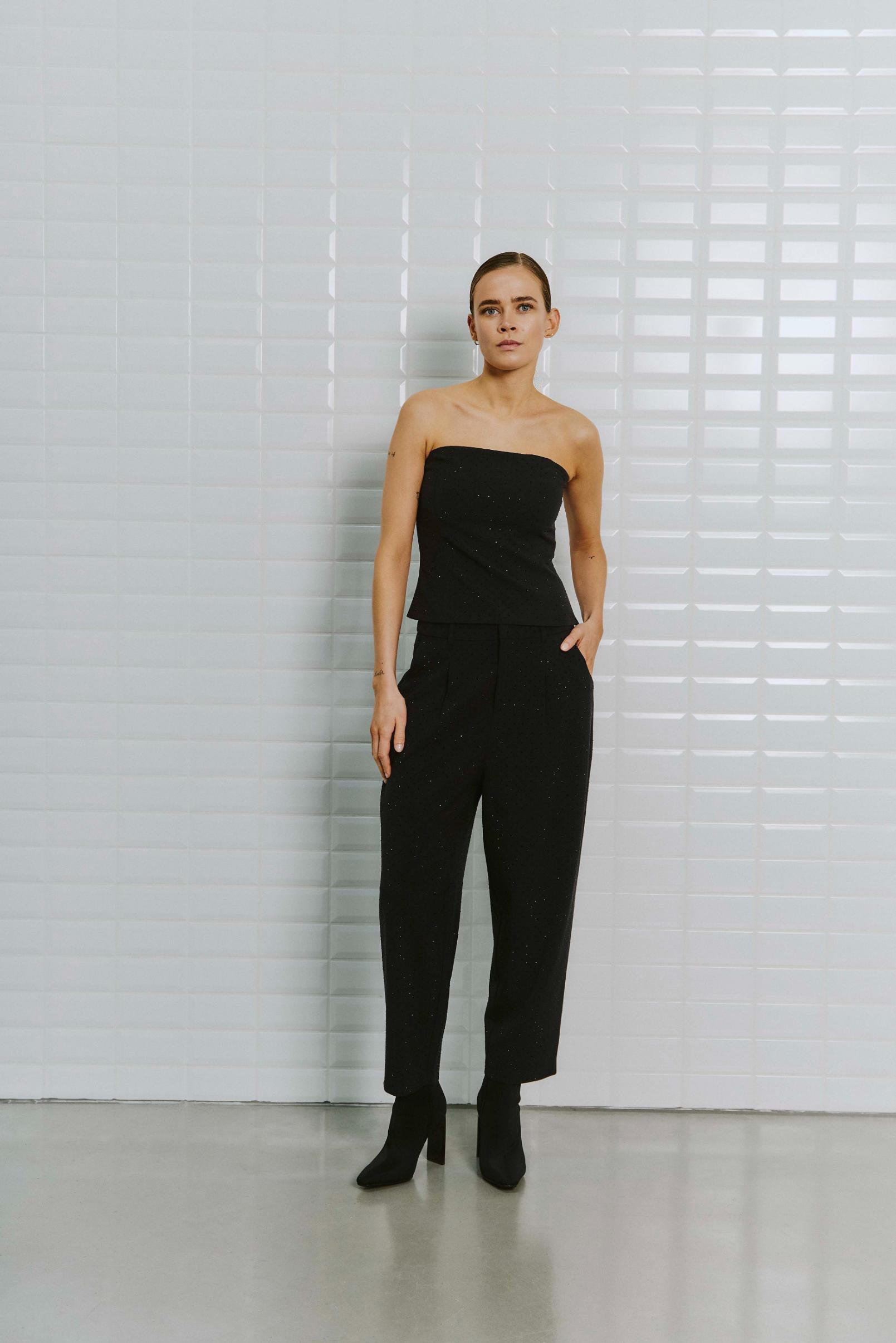 Zwart met glitter corsage, kan als set met bijhorende broek en blazer