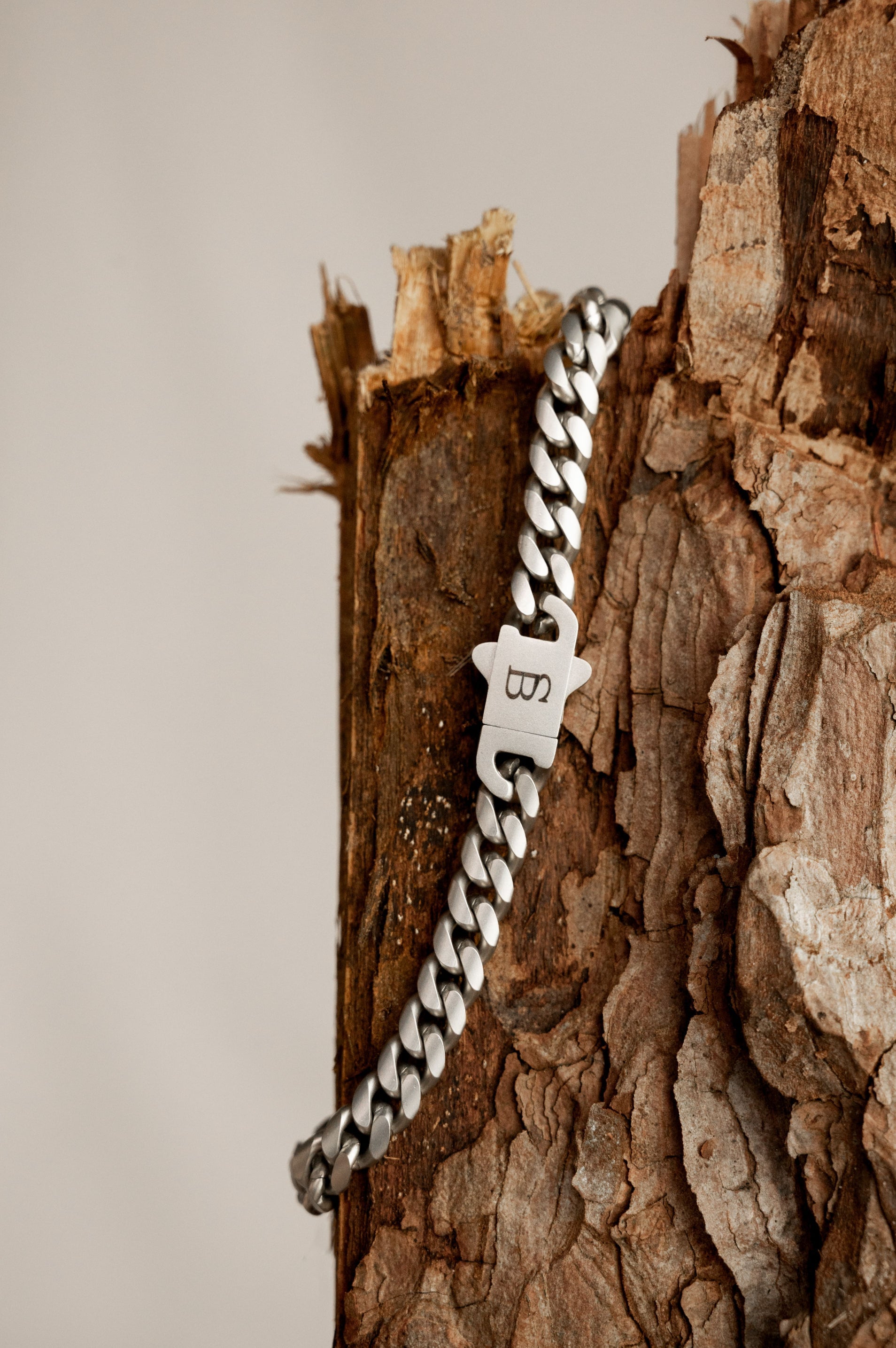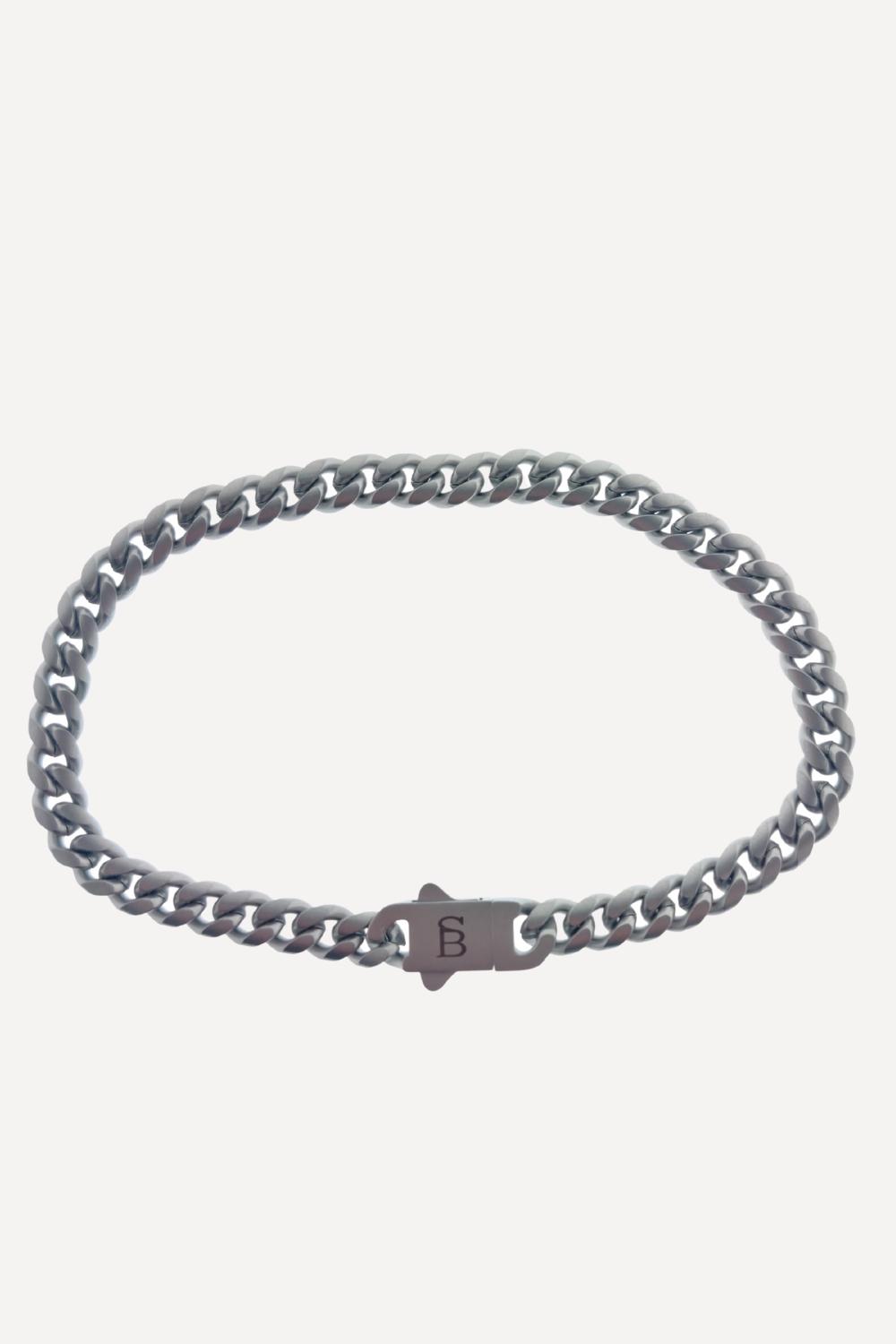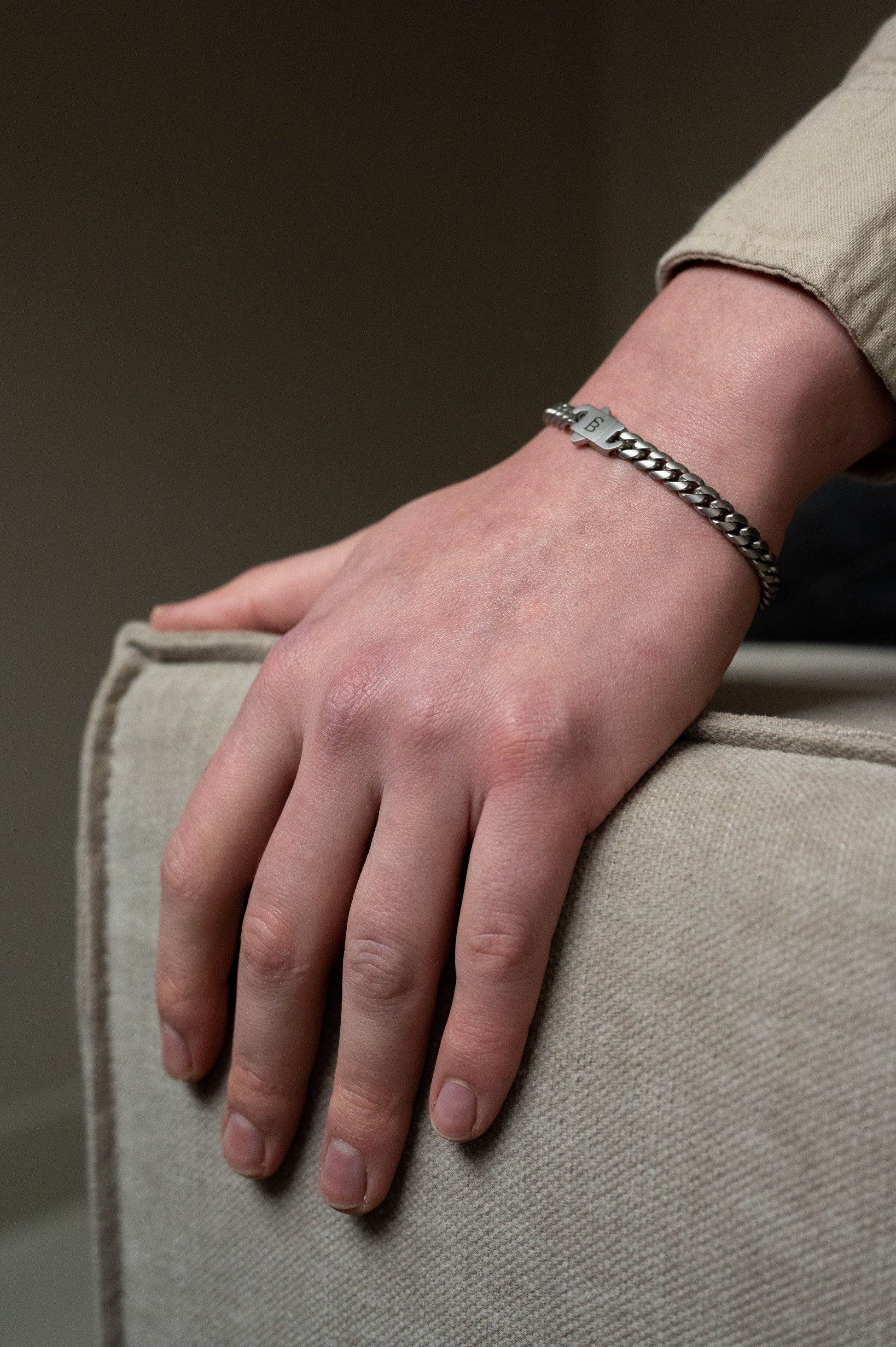 Zilverkleur, staal armband. Deze is de smallere versie.