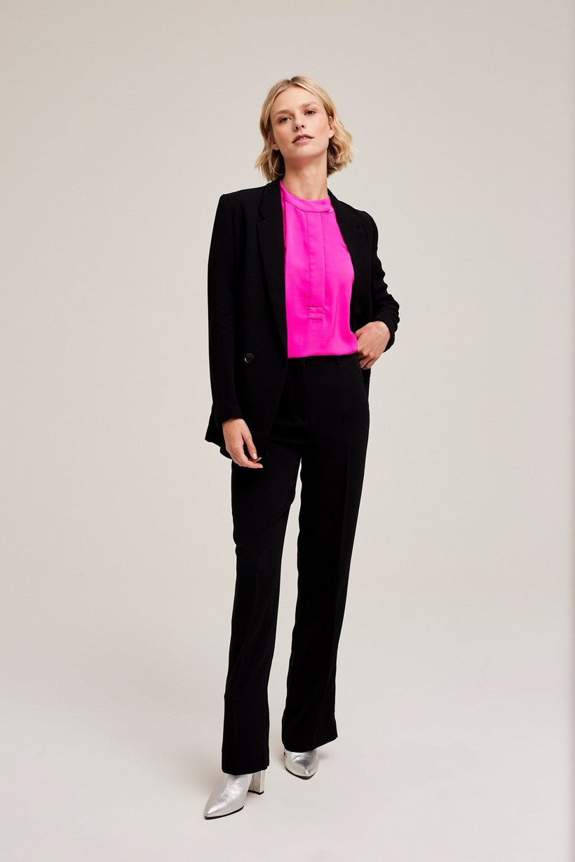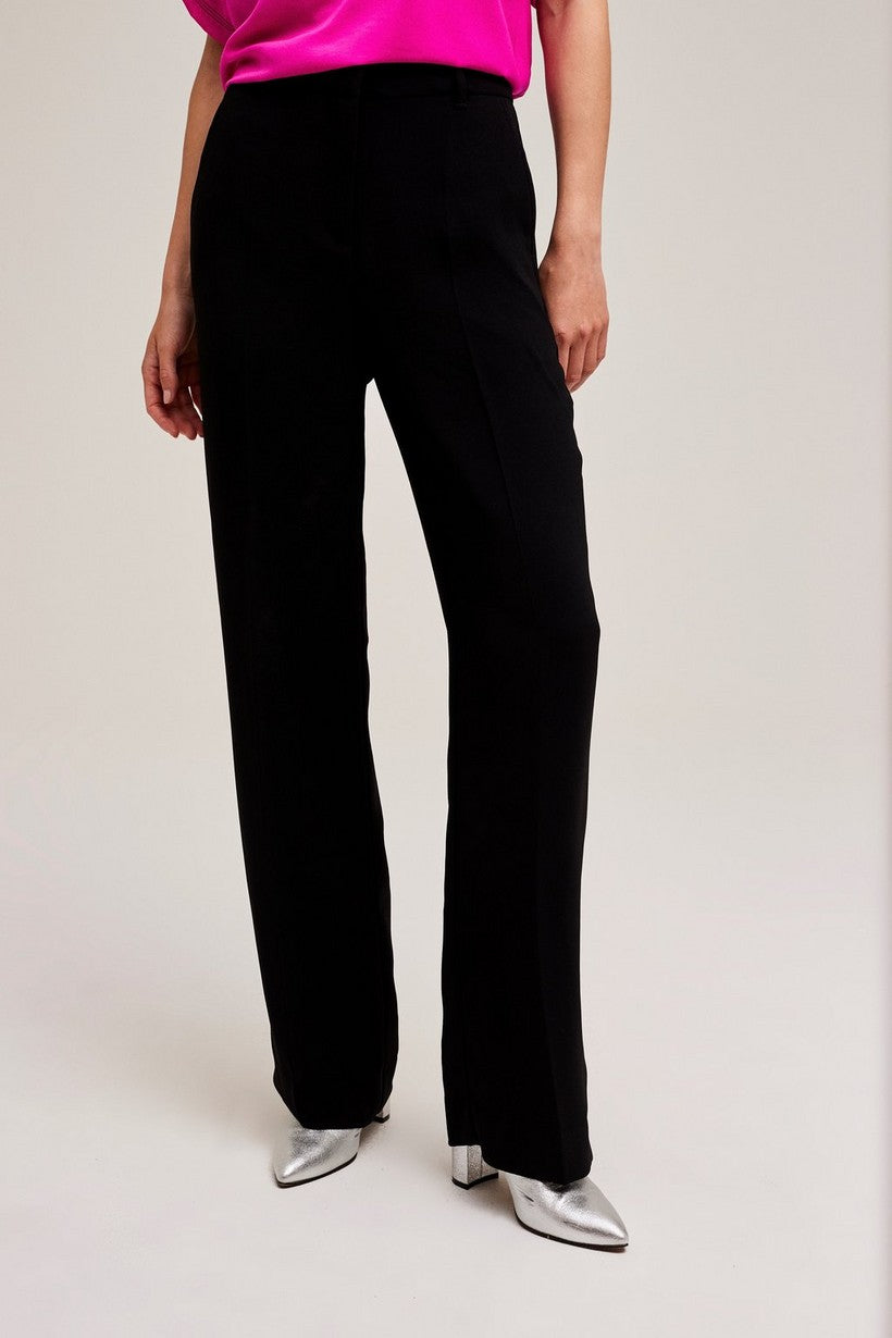 Met deze zwarte, lang broek voor dames haal je een tijdloos it-item in jouw garderobe dat je voor elke gelegenheid kan dragen. Met een warme trui naar het werk of een blouse in een print voor een etentje.